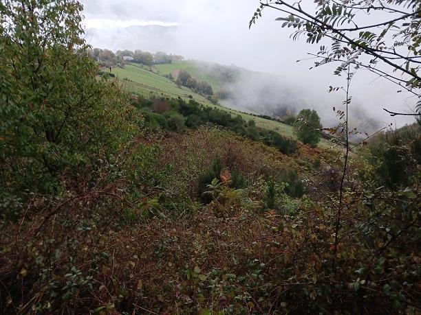 Parfois le Chemin est magnifique, bordé d'arbres, de panoramas découvrant des collines jonchées de parcelles cultivées aux couleurs différentes, parfois le Chemin suit une autoroute lointaine mais bruyante ou la croise par un pont ou un tunnel. Parfois, il y a un monastère fermé, un vieil arbre remarquable, des colchiques des Pyrénées, de jolies bruyères... Tout ce que l'on peut voir est différent d'un passage express en voiture ou en vélo... Sur les collines voisines nous distinguons les traces d'un été torride : plusieurs sommets de collines ont été brûlés et exposent leur noirceur comme les anciens mineurs de notre pays se faisaient photographier la tête couverte des poussières de charbon (les gueules noires).