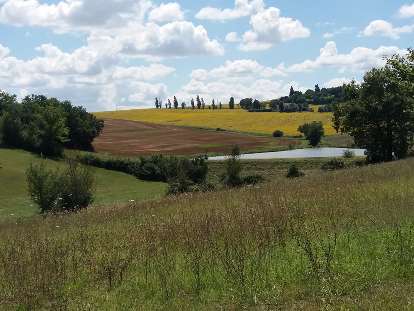 Nous finissons par rattraper Joseph et Odette dans une église et, le chemin paraît du coup un peu moins long parce que l'on peut parler avec eux. Pourtant, au bout d'un moment, nous les lâchons le temps de vider une gourde, nous ne les rattraperons pas. Ce n'est pas grave, nous arrivons à Lectoure. Nous nous arrêtons dans la montée plusieurs fois car cette dernière montée est vraiment dure.